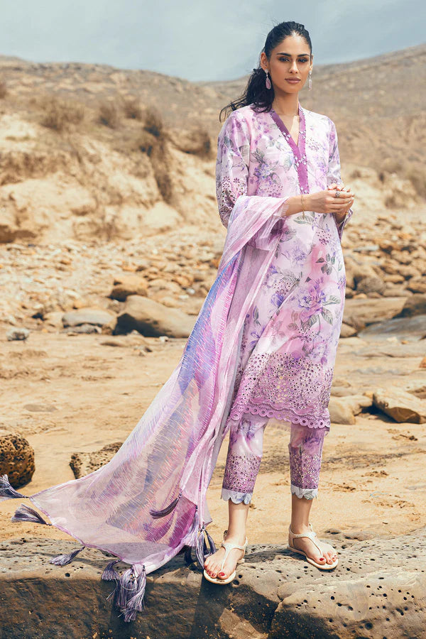ShirtEmbroidered Organza Neck patchOrganza Daman Patti Embroidered LAWN SleevesEmbroidered Organza Sleeves PattiDyed BackFabric: LAWNDupattaDyed Dupatta With DiamantesEmbroidered Organza Dupatta PattiFabric: PURE SHAFFONTrousersDyed TrouserFabric: LAWNColor: CHEEKUNote: Dry Clean Only