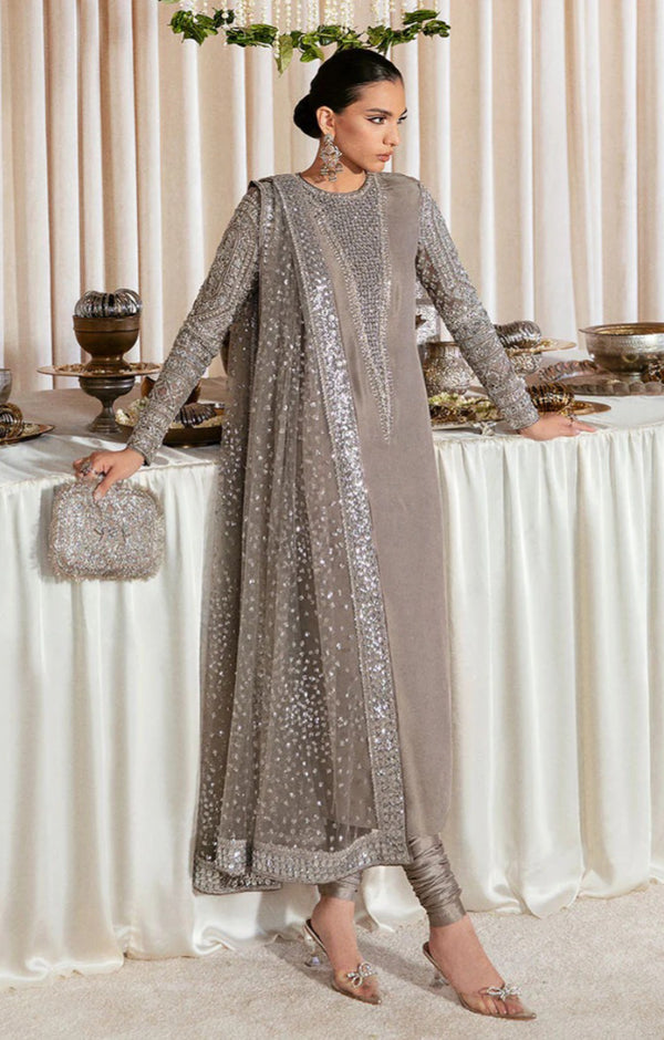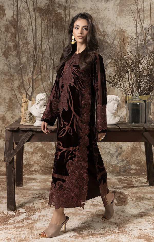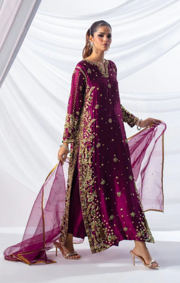 ShirtEmbroided Velvet Front Embroided Velvet Back Embroided Velvet SleevesColor: PurpleFabric: VelveTTrousersPlain Velvet Color: PurpleFabric: VelvetDupattaReady To Wear DuppataEmbroidered Velvet Cutwork StyleColor: PurpleFabric: VelvetNote: Dry Clean Only Note:Actual product color may vary...