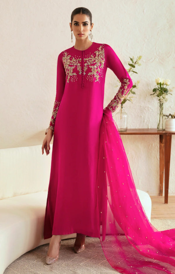 ShirtEmbroidered Organza Neck Patch With 3D FlowersEmbroidered Velvet Cutwork Ghera Patch IIEmbroidered Velvet Sleeves PattiEmbroidered Organza Sleeves Patch With 3D FlowersDyed Palachi Front, Sleeves & BackColor: PINKFabric: PalachiTrousersDyed TrouserColor: PINKFabric:...