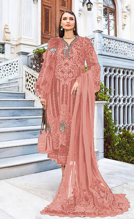 LINEN PRINTED 3 PIECE UNSTICHED CORAL PINK