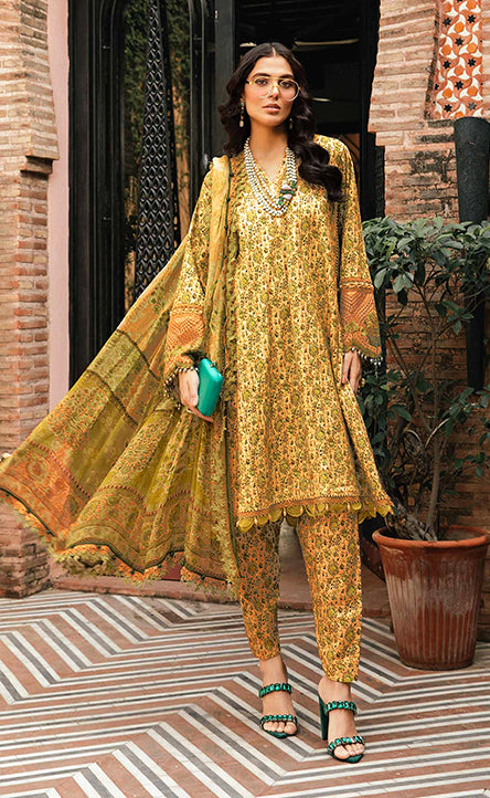 LINEN PRINTED 3 PIECE UNSTICHED YELLOW N