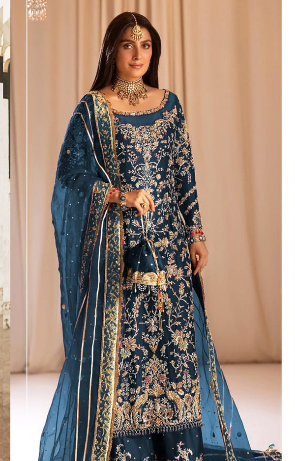 Shirt: Embroided Hand Embellished Front . Embroided Front With Sequins,Tilla,Pearls,Stone Work. Embroided Organza Front & Back. Embroided Organza Hand Embellished Sleeves Embroidered Organza Back Patti Embroided Organza Back Dupatta: Embroided...