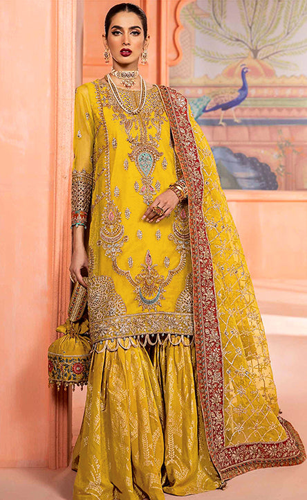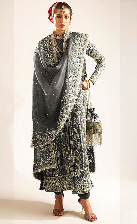 SHIRT: Fabric: Premium Shisha Silk Front: Hand-made neck with delicate pearls and hand embellishment Sleeves: Full embroidered & hand-embellished on Shisha Silk Back: Intricately embroidered Shisha Silk DUPATTA: Ready-to-wear embroidered...