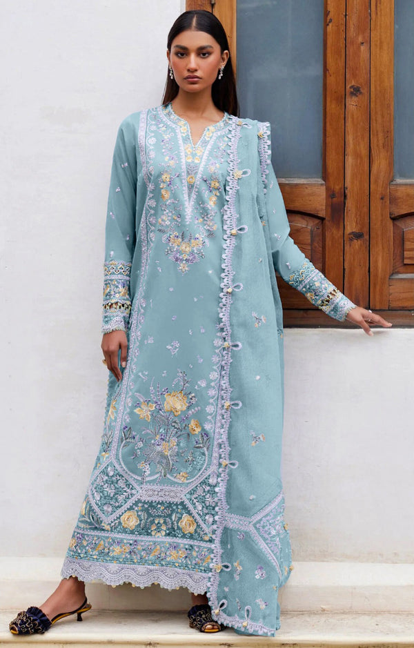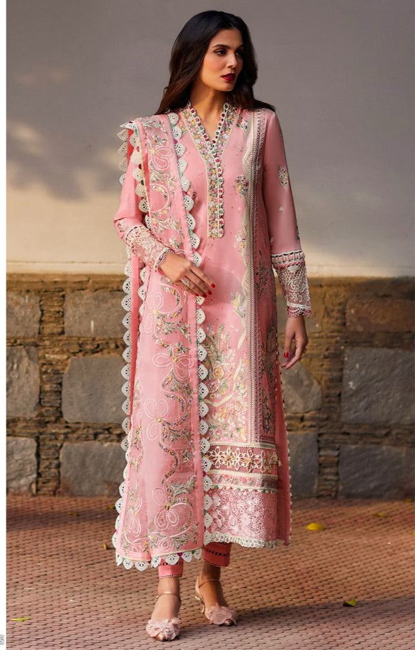 Shirt Embroidered CHIKANCARI BORING Lawn FRONTEmbroidered Organza Ghera Patch Embroidered Lawn Sleeves Left & RightEmbroidered Organza Sleeves PattiDyed Lawn BackDupatta EMBROIDED ORGANZA PALLUSEmbroidered Organza Dupatta PattiEMBROIDED KHAADI NET DUPPATA WITH BORDERS...