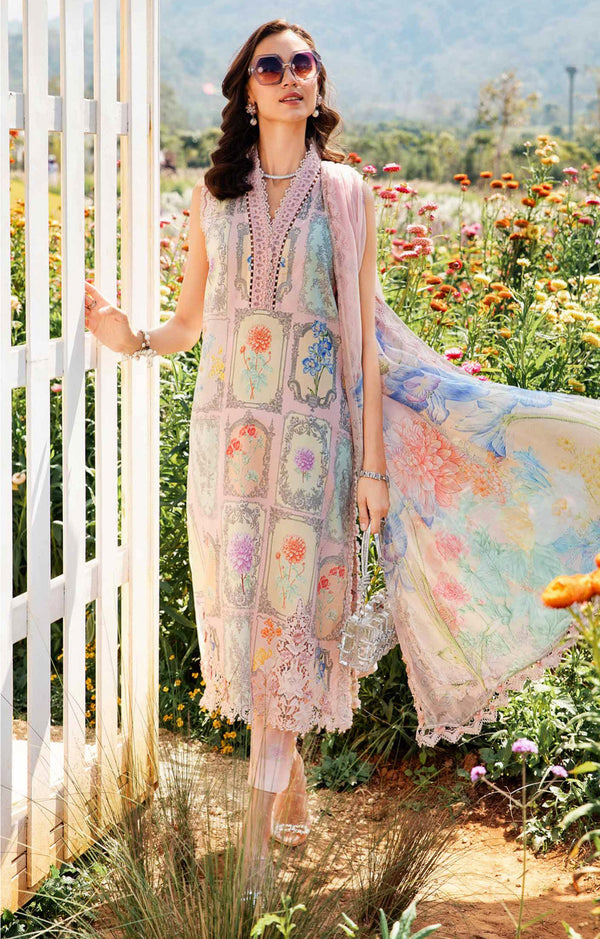 ShirtPrinted ShirtEmbroidered Organza PatchFabric: LAWNColor: PINKDupattaPrinted DupattaFabric: SHAFOON DUPATTAColor: PINKTrousers