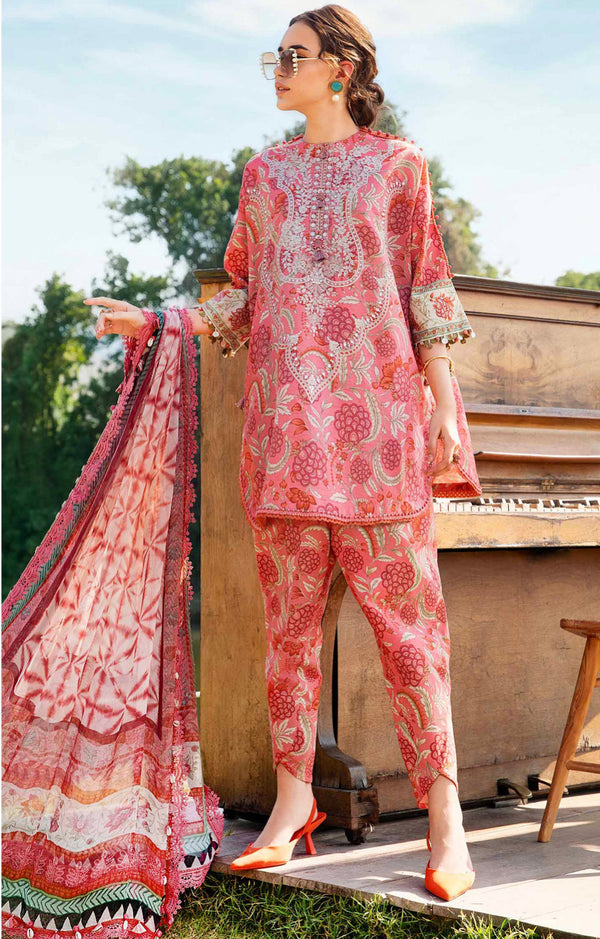 ShirtPrinted Embroidered FrontPrinted Back & SleevesFabric: LawnColor: PinkDupattaPrinted DupattaFabric: SILK PRINTColor: PINKTrousers PRINTED TROUSERFabric: LAWNColor: PINKNote: Dry Clean Only SAME AS ORIGINAL QUALITY EMBROIDERY AND STUFF. Disclaimer: Product color may vary...
