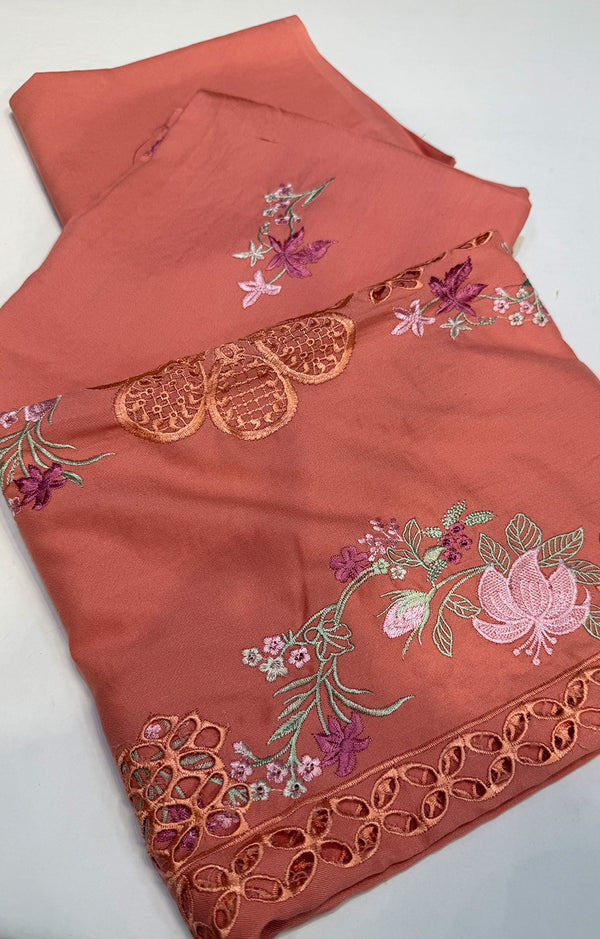 PEACH LEATHER SHAWL SUIT KAANI FLOWER