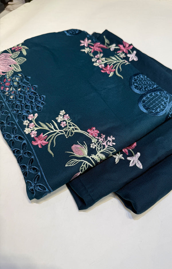 Shirt:Chikan Kari Embriodered VISCOSE (Front)Embriodered Border (Front & Back)PLAIN VISCOSE (Back)Chikan Kari Embriodered (Sleeves)Dupatta:Embroided Chiffon Duppata Ready To wear DuppataTrouser:Plain TrouserFabric DetailsShirt : VISCOSEDupatta : CHIFFON Trouser : VISCOSE SAME AS...