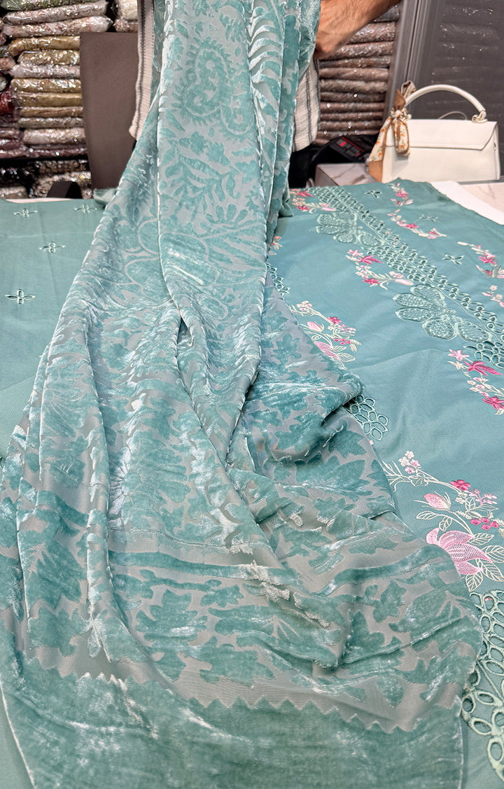 - Embroided Dhanak Chikankari Front.
