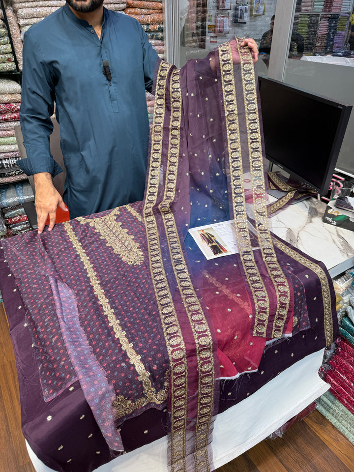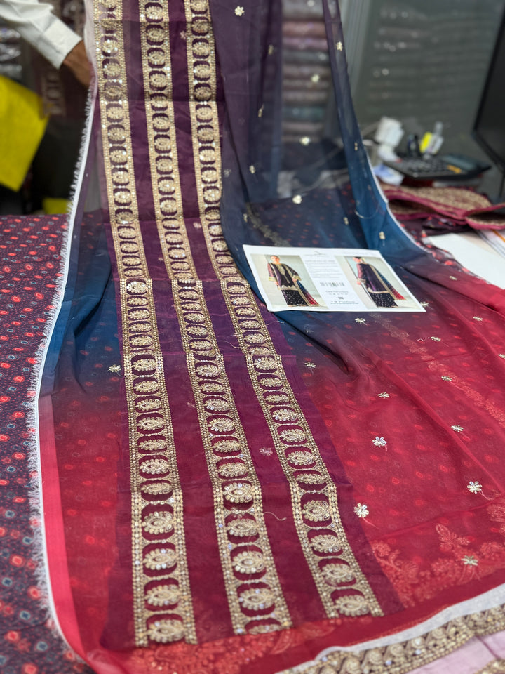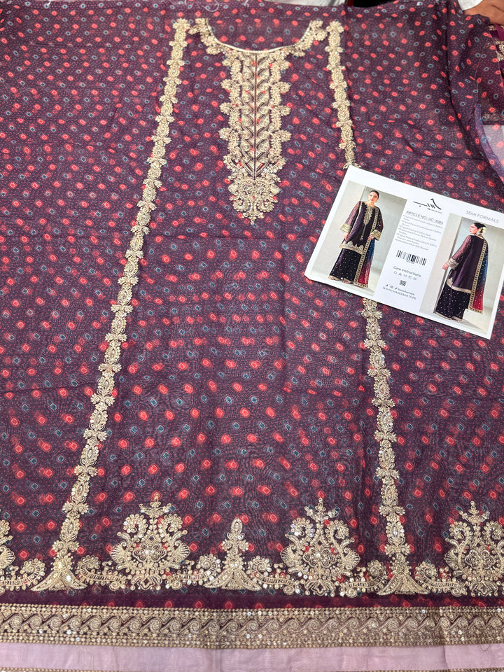 CHIFFON PRINT FULL EMBROIDED SLEEVES