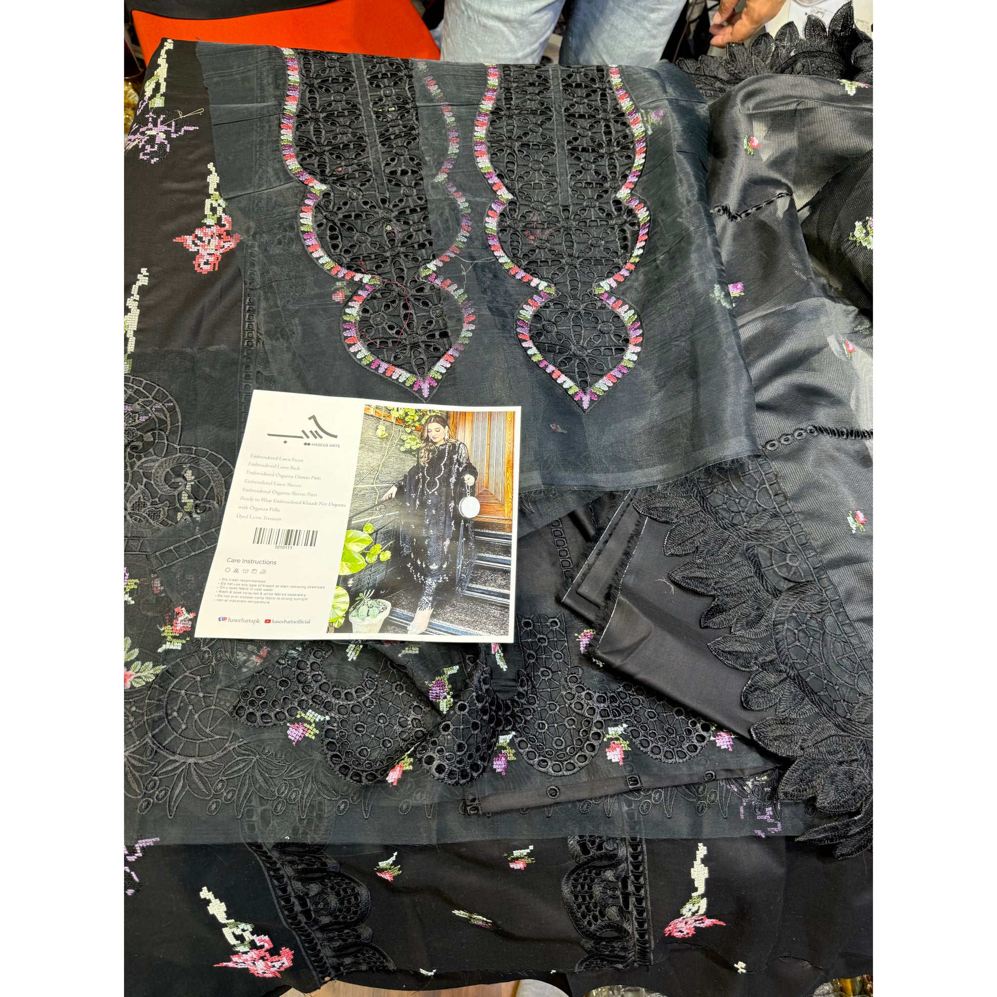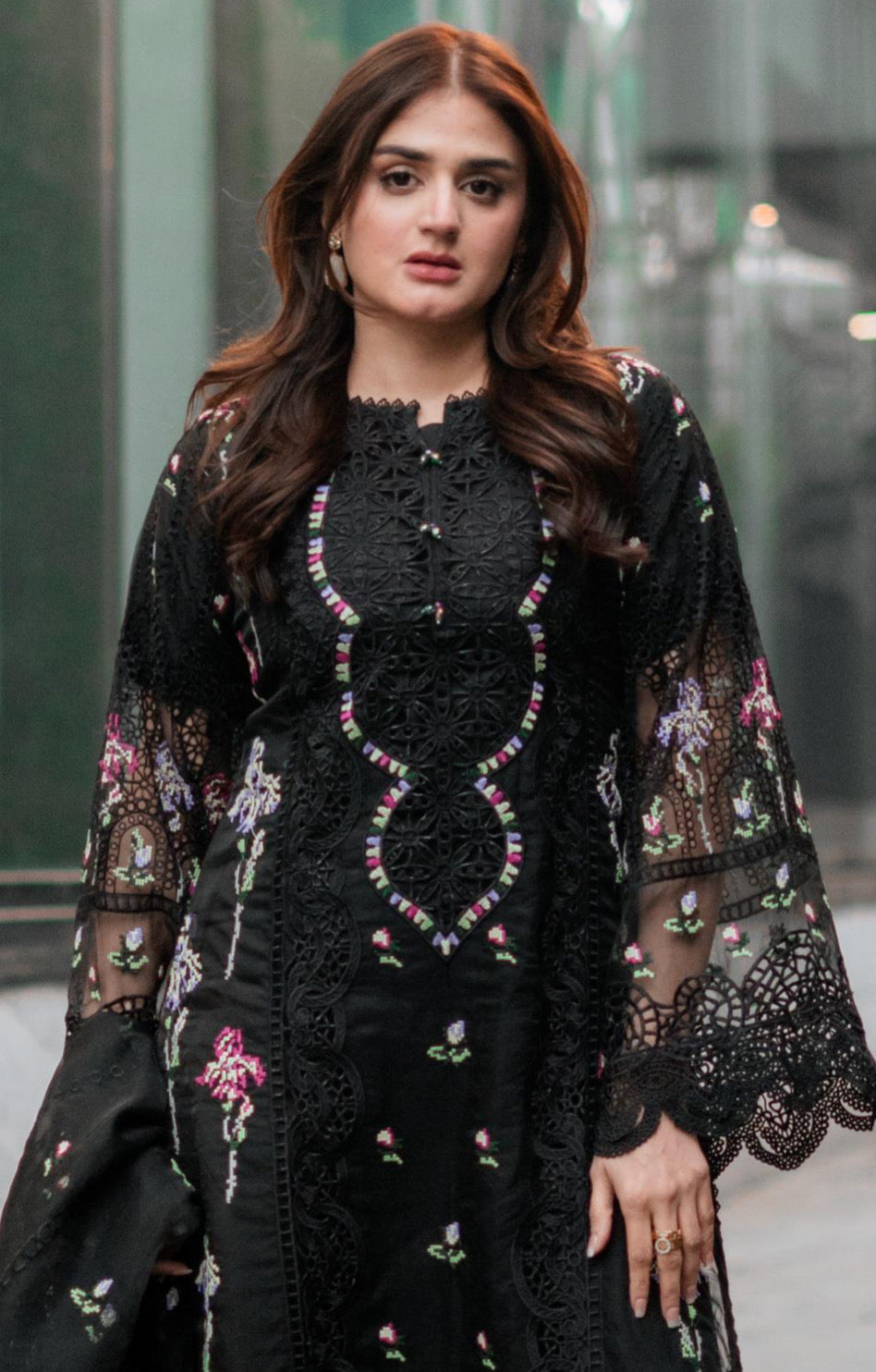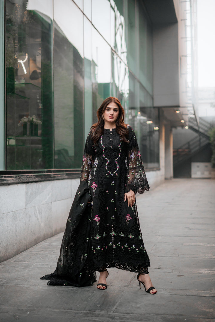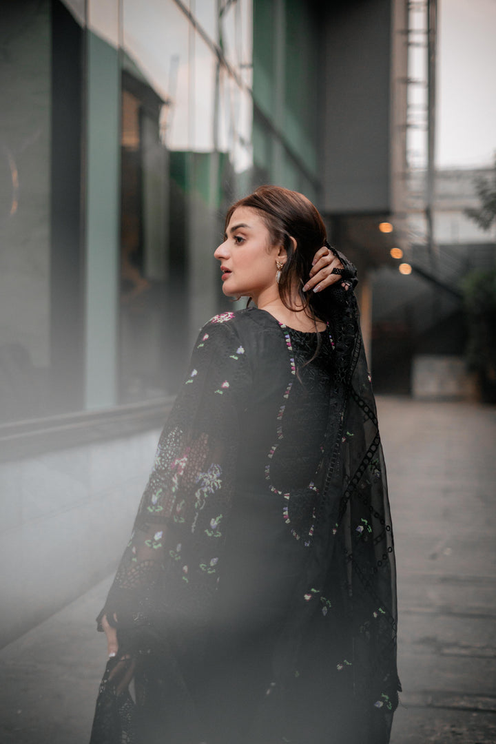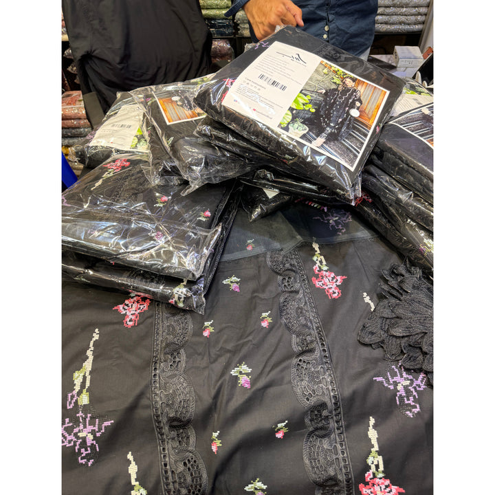 ANEELAS BLACK LAWN 3-PC (DOUBLE NECK)