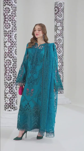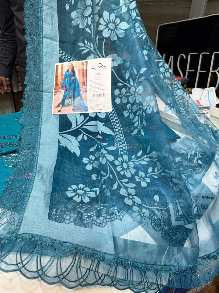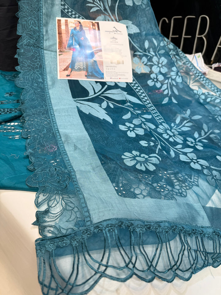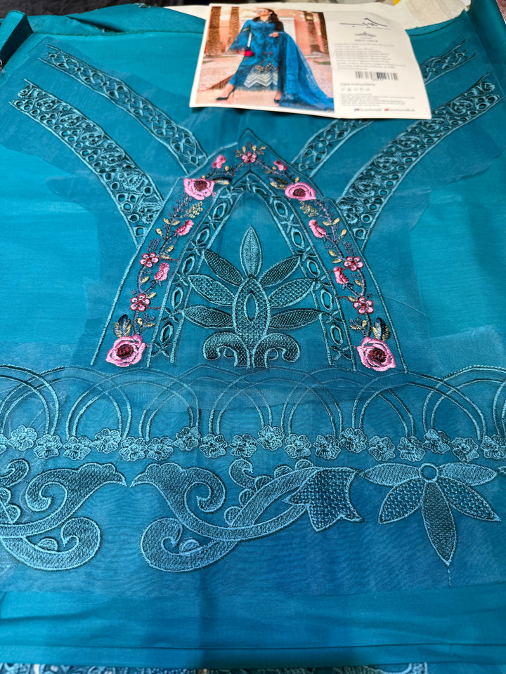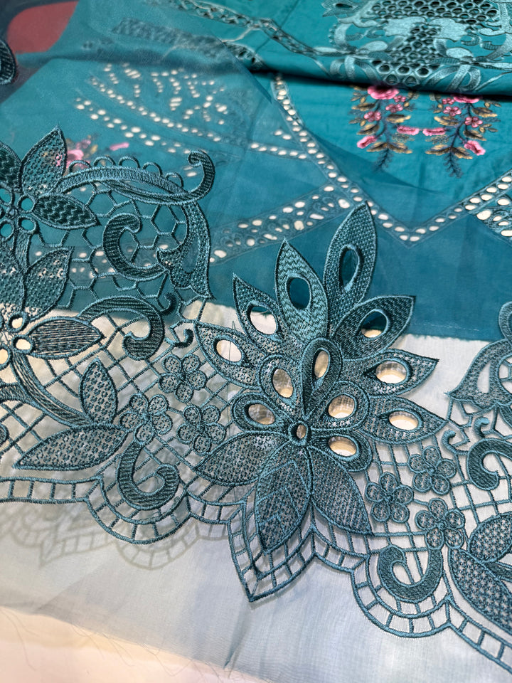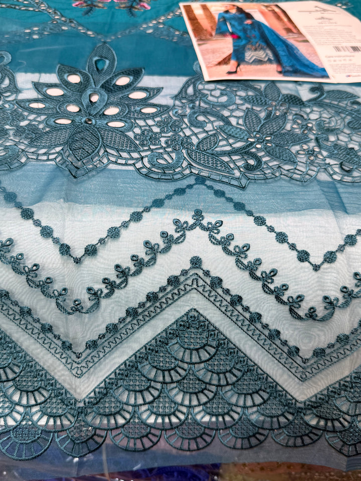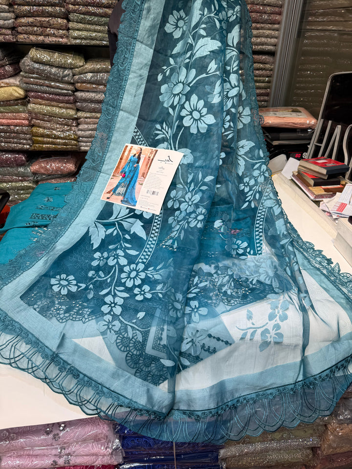 EMBROIDED ORGANZA PEACH 4 SIDE PATTI