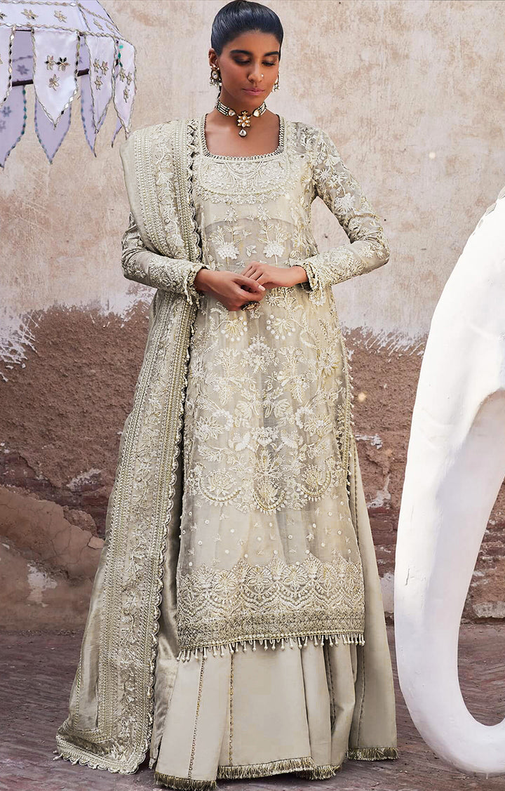 EMBROIDED ORGANZA HAND EMBELLISHED SLEEVES